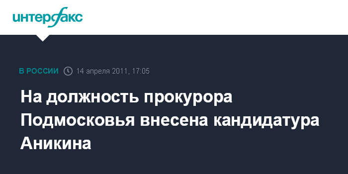 Москва. 14 апреля. INTERFAX.RU - Новым прокурором Московской области может быть назначен глава управления Генпрокуратуры Александр Аникин, сообщили в Генпрокуратуре РФ.