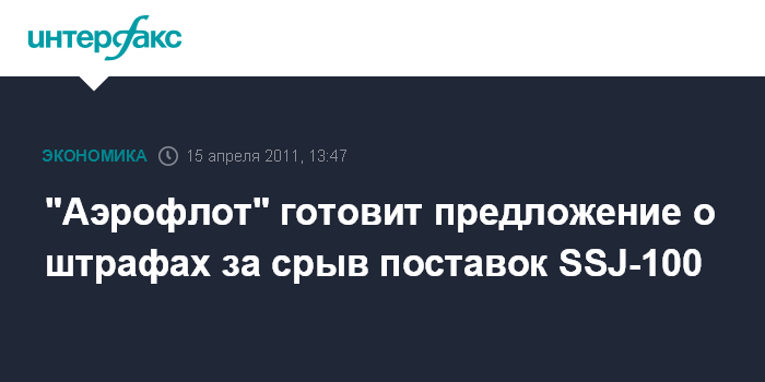"Аэрофлот" готовит предложение о штрафах за срыв поставок SSJ-100