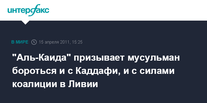 "Аль-Каида" призывает мусульман бороться и с Каддафи, и с силами коалиции в Ливии