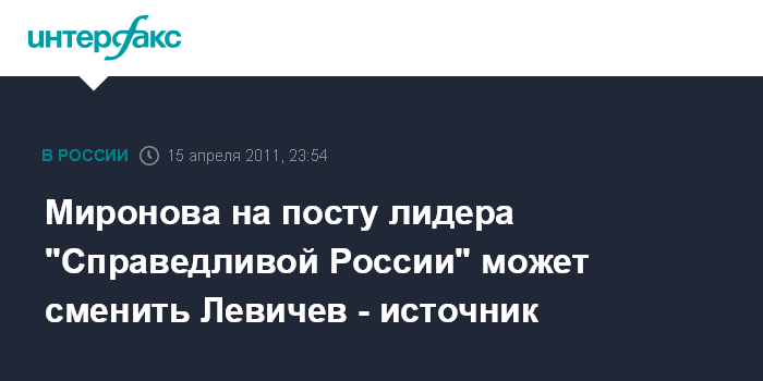 Москва. 15 апреля. ИНТЕРФАКС - Сергей Миронов на предстоящем в субботу пятом съезде "Справедливой России" может уйти с поста председателя партии.