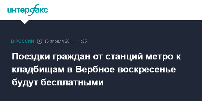 Поездки граждан от станций метро к кладбищам в Вербное воскресенье будут бесплатными