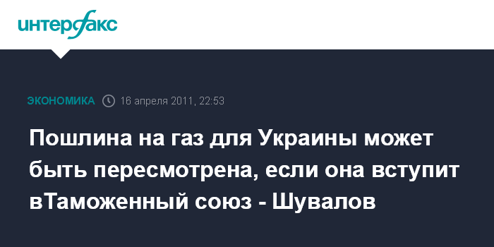 Пошлина на газ для Украины может быть пересмотрена, если она вступит вТаможенный союз - Шувалов