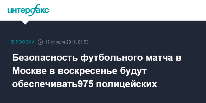 Безопасность футбольного матча в Москве в воскресенье будут обеспечивать975 полицейских