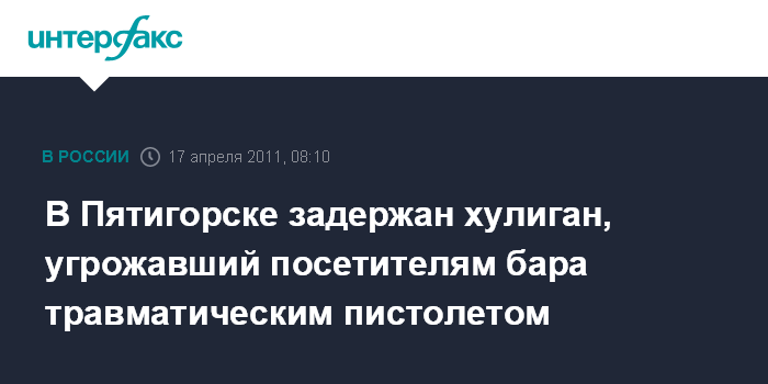 "Инцидент произошел минувшим вечером. Житель Дагестана пришел в один из баров в городе Пятигорске, где выпив спиртного, достал пистолет и стал угрожать посетителям бара. Урезонить хулигана смогли сотрудники полиции, задержав его", - сказал собеседник агентства.