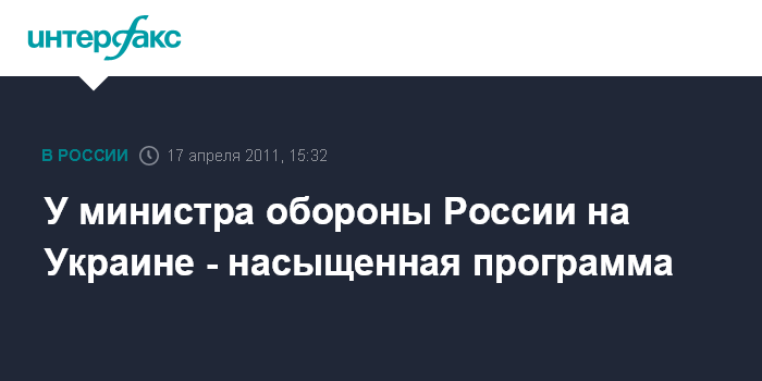 "Анатолий Сердюков прибыл с рабочим визитом на Украину по приглашению главы оборонного ведомства Михаила Ежеля. А.Сердюков планирует посетить ряд предприятий украинского оборонно-промышленного комплекса и объекты вооруженных сил, в частности, полигон взлетно-посадочных систем НИТКА в городе Саки и академию ВМС Украины имени Нахимова в Севастополе", - сообщила "Интерфаксу" пресс-секретарь министра подполковник Ирина Ковальчук.