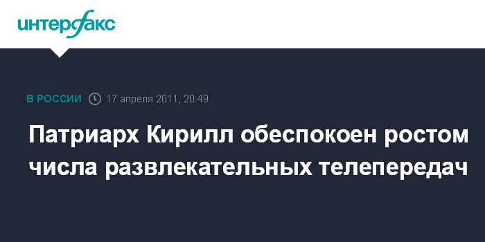 Москва. 17 апреля. ИНТЕРФАКС - Патриарх Московский и всея Руси Кирилл не может понять причин засилья увеселительных программ на российском телевидении.