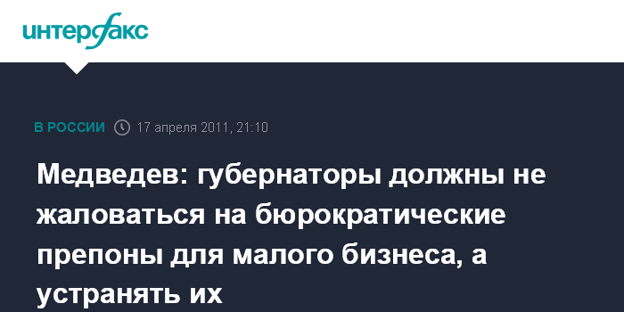 Медведев: губернаторы должны не жаловаться на бюрократические препоны для малого бизнеса, а устранять их