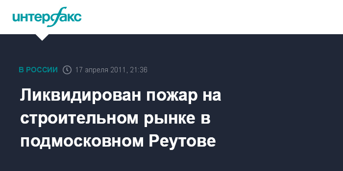 Москва. 17 апреля. ИНТЕРФАКС - Пожар в подмосковном Реутове на строительном рынке ликвидирован.