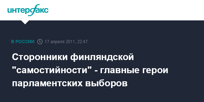Хельсинки. 17 апреля. ИНРТЕРФАКС - Главным сюрпризом на прошедших в воскресенье парламентских выборах в Финляндии стала молодая партия "Истинные финны".