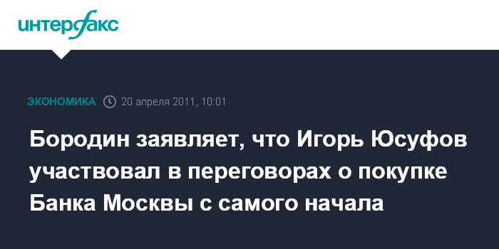 Бородин заявляет, что Игорь Юсуфов участвовал в переговорах о покупке Банка Москвы с самого начала