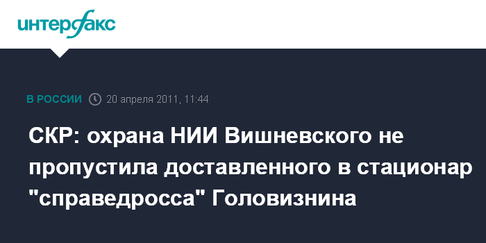 СКР: охрана НИИ Вишневского не пропустила доставленного в стационар "справедросса" Головизнина