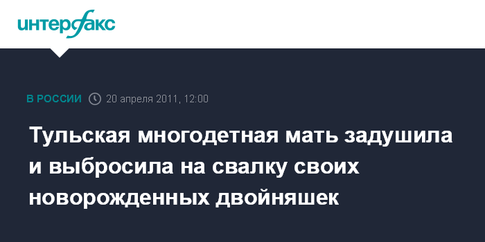 Тульская многодетная мать задушила и выбросила на свалку своих новорожденных двойняшек