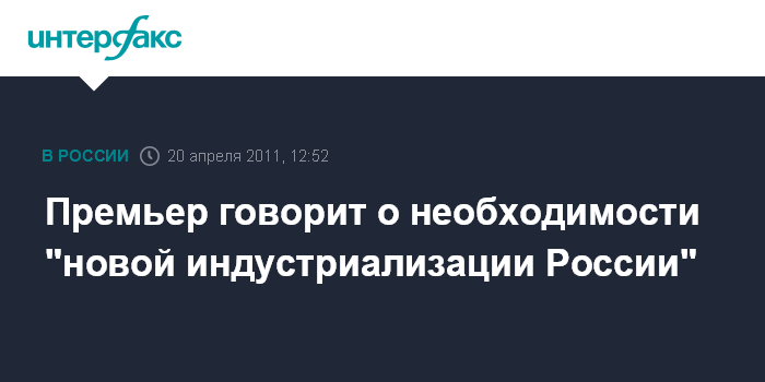"Здесь вновь встает вопрос о характере нашего дальнейшего экономического роста. Убежден, нам необходимо запустить новую волну индустриального, технологического развития России, создать условия для притока долгосрочных, "умных" инвестиций и передовых технологий", - сказал В.Путин.