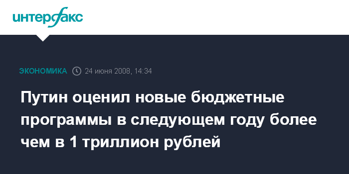 "Общий объем ресурсов, который может быть направлен на реализацию новых бюджетных программ, жестко задан Бюджетным кодексом: речь идет о сумме, превышающей 1 трлн рублей на 2009 г.", - заявил Путин на заседании бюджетной комиссии во вторник.
