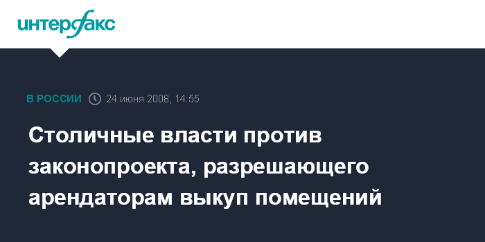 Москва. 24 июня. INTERFAX.RU - Московские власти выступают против предстоящего принятия Госдумой РФ во втором чтении законопроекта, позволяющего арендаторам выкупать у города помещения.