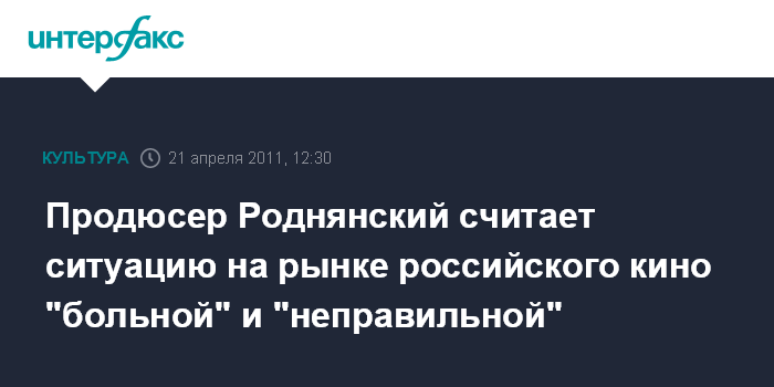 Продюсер Роднянский считает ситуацию на рынке российского кино "больной" и "неправильной"