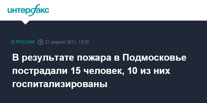 В результате пожара в Подмосковье пострадали 15 человек, 10 из них госпитализированы