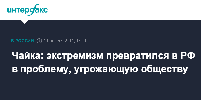 Чайка: экстремизм превратился в РФ в проблему, угрожающую обществу