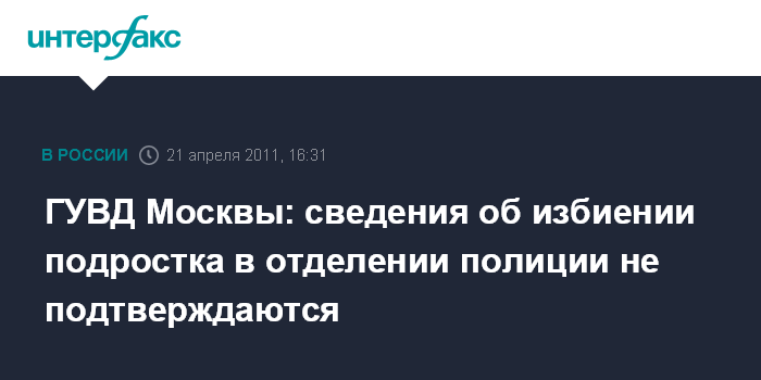 ГУВД Москвы: сведения об избиении подростка в отделении полиции не подтверждаются