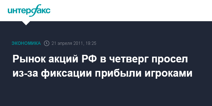 Рынок акций РФ в четверг просел из-за фиксации прибыли игроками