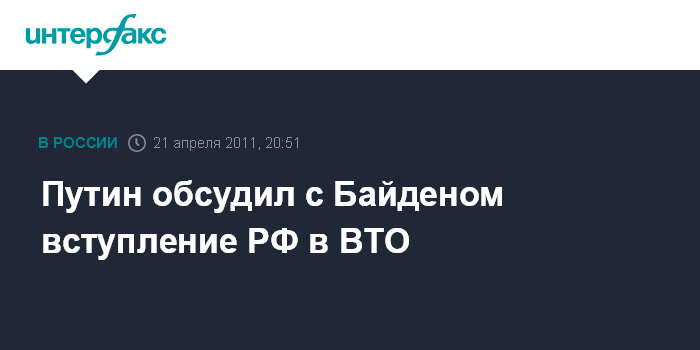 "В продолжение диалога, начатого в ходе недавнего визита Байдена, обсуждались различные вопросы российско-американского взаимодействия в торгово-экономической сфере, включая тему присоединения России к ВТО", - сказал Песков.