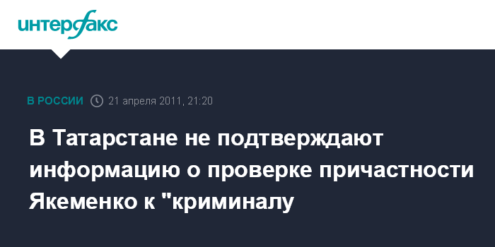 "Ничего об этом не слышал, знаю только, что дело это давнее и давно прекращено", - сообщил агентству "Интерфакс-Поволжье" старший помощник руководителя СУ СКР по Татарстану Эдуард Абдуллин в четверг.