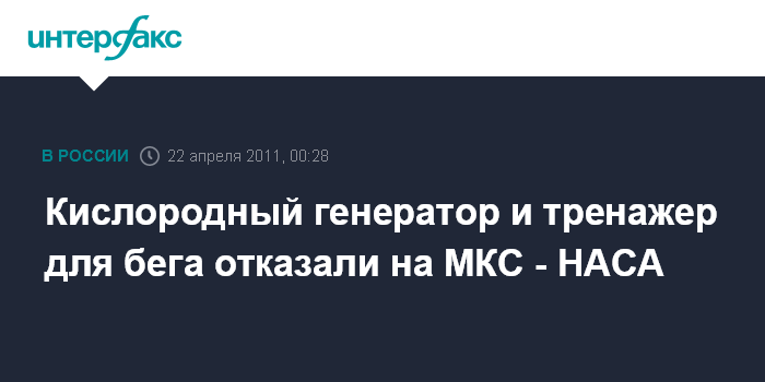 Кислородный генератор и тренажер для бега отказали на МКС - НАСА