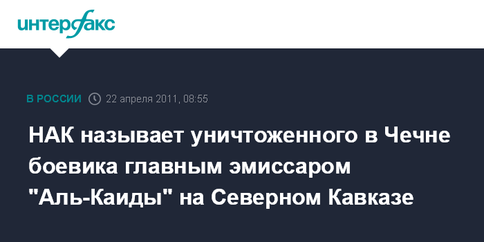НАК называет уничтоженного в Чечне боевика главным эмиссаром "Аль-Каиды" на Северном Кавказе