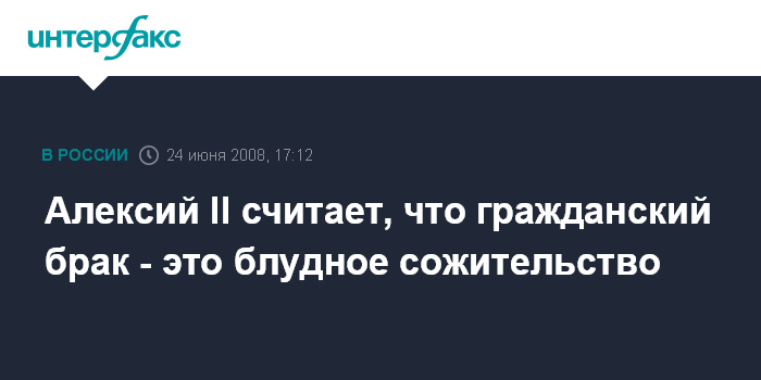 "Необходимо объяснять, почему такой брак (гражданский - "ИФ") не может считаться браком, а расценивается (Церковью - "ИФ") как блудное сожительство", - сказал Алексий II в своем выступлении во вторник на открытии Собора в зале церковных соборов храма Христа Спасителя.