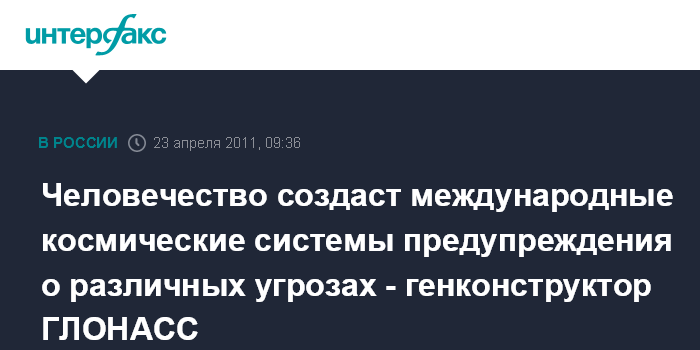 Человечество создаст международные космические системы предупреждения о различных угрозах - генконструктор ГЛОНАСС
