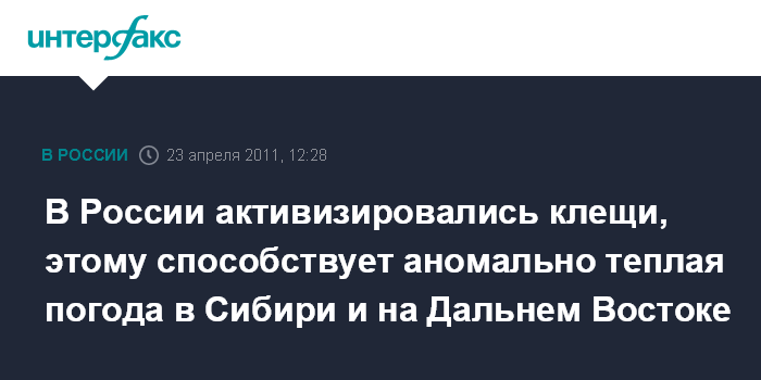Глава Роспотребнадзора сообщил, что этой весной клещи наиболее активны в Кемеровской, Томской, Иркутской, Приморье, Свердловской областях, Забайкалье, Алтайском крае и ряде других регионов.