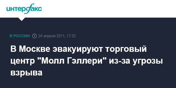 Москва. 24 апреля. INTERFAX.RU - Эвакуация посетителей торгового центра "Молл Гэллери" идет на северо-востоке Москвы из-за угрозы взрыва, сообщил "Интерфаксу" источник в правоохранительных органах в воскресенье.