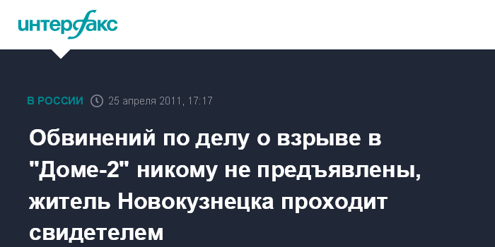 Обвинений по делу о взрыве в "Доме-2" никому не предъявлены, житель Новокузнецка проходит свидетелем