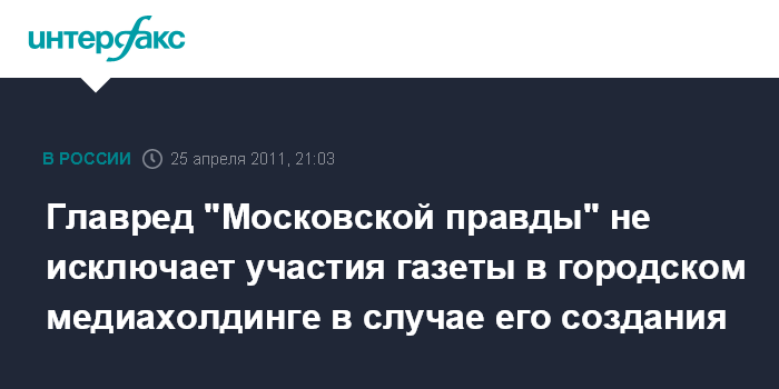 Главред "Московской правды" не исключает участия газеты в городском медиахолдинге в случае его создания