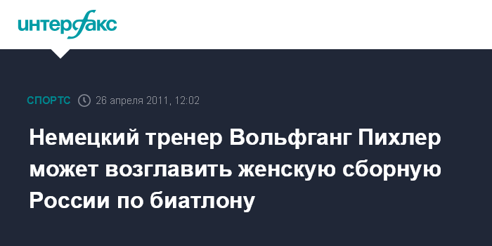 Сам немецкий специалист подтвердил эту информацию, отметив: на среду у него запланирована встреча с руководством Союза биатлонистов России (СБР). Контракт В.Пихлера с Шведской федерацией биатлона рассчитан до 2014 года.