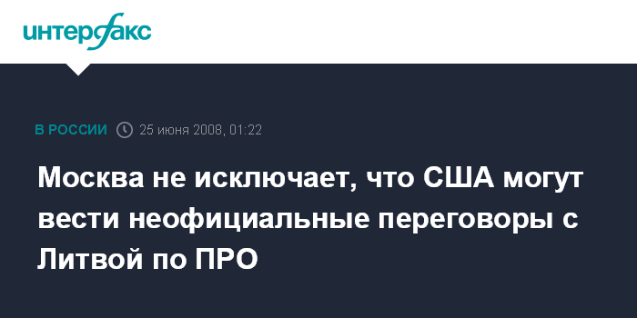 Москва. 25 июня. ИНТЕРФАКС - В России не исключают, что США ведут неофициальные переговоры с Литвой относительно размещения на ее территории элементов ПРО.