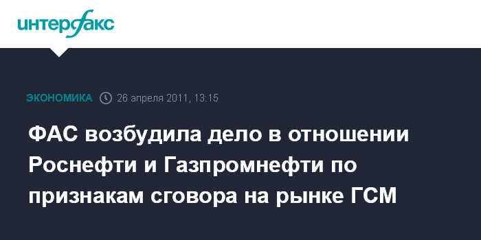 ФАС возбудила дело в отношении Роснефти и Газпромнефти по признакам сговора на рынке ГСМ