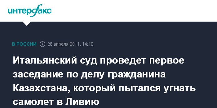 Итальянский суд проведет первое заседание по делу гражданина Казахстана, который пытался угнать самолет в Ливию