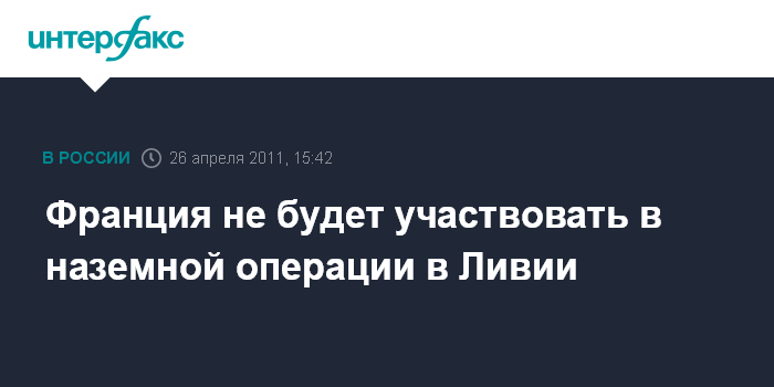 Москва. 26 апреля. INTERFAX.RU - Французская сторона исключает свое участие в возможной наземной военной операции в Ливии, заявил президент Франции Николя Саркози.