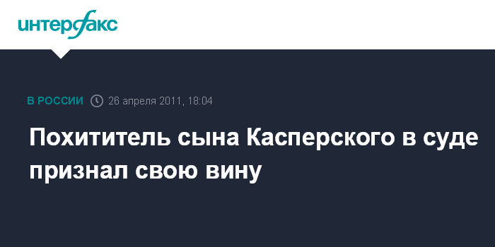 Москва. 26 апреля. INTERFAX.RU - Старший из предполагаемых похитителей Ивана Касперского признает вину в совершении данного преступления.