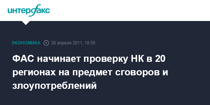 ФАС начинает проверку НК в 20 регионах на предмет сговоров и злоупотреблений