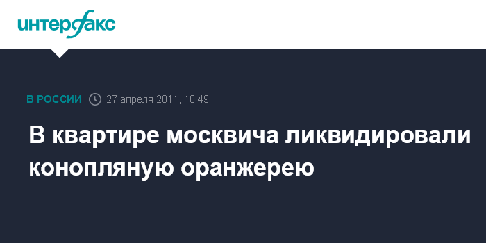 Москва. 27 апреля. INTERFAX.RU - Столичные наркополицейские уничтожили конопляную оранжерею, оборудованную прямо в квартире жилого дома на северо-западе Москвы, сообщила "Интерфаксу" начальник отдела информации и общественных связей Московского управления Госнаркоконтроля Мария Луценко.