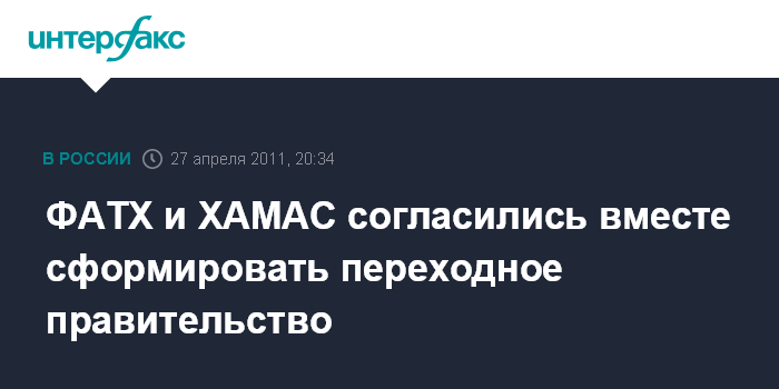Каир/Иерусалим. 27 апреля. INTERFAX.RU - Представители движений ФАТХ и ХАМАС во время переговоров в Каире согласились вместе сформировать переходное палестинское правительство, сообщают в среду официальные египетские СМИ.