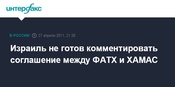 Иерусалим. 27 апреля. INTERAX.RU - Власти Израиля воздерживаются от оценок соглашения о примирении между палестинскими группировками ФАТХ и ХАМАС, так как сначала намерены подробно изучить поступающие на эту тему сообщения.