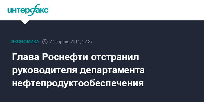Глава Роснефти отстранил руководителя департамента нефтепродуктообеспечения
