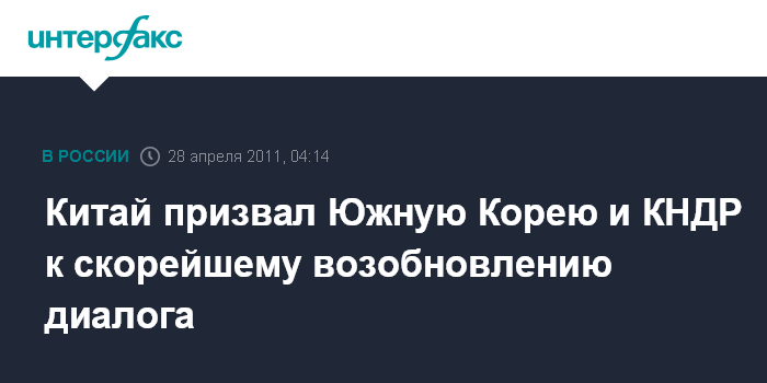 Китай призвал Южную Корею и КНДР к скорейшему возобновлению диалога