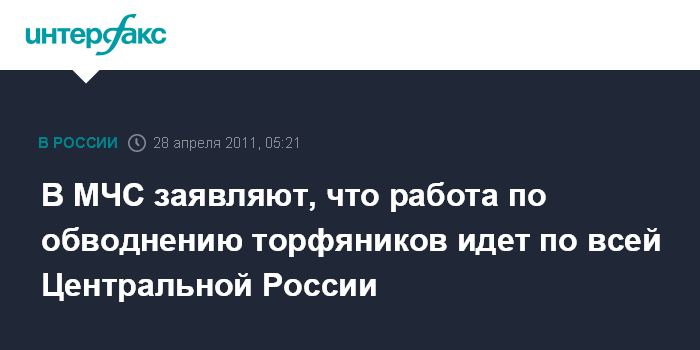 Москва. 28 апреля. ИНТЕРФАКС - Работа по обводнению торфяников после аномально жаркого лета прошлого года развернулась по всему Центральному федеральному округу, отмечает замглавы МЧС РФ Александр Чуприян.