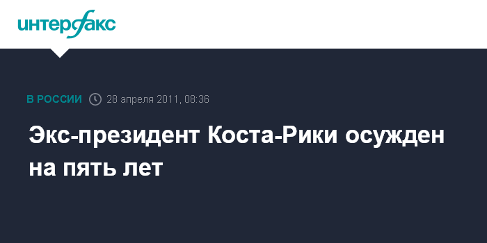 Лондон. 28 апреля. INTERFAX.RU - Бывший президент Коста-Рики Мигель Родригес признан виновным в коррупции и осужден на пять лет тюремного заключения, сообщает в четверг BBC.