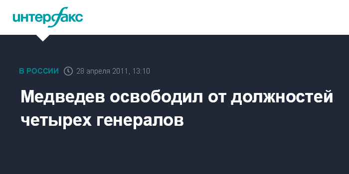 Медведев освободил от должностей четырех генералов