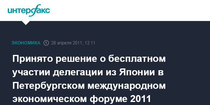 Принято решение о бесплатном участии делегации из Японии в Петербургском международном экономическом форуме 2011